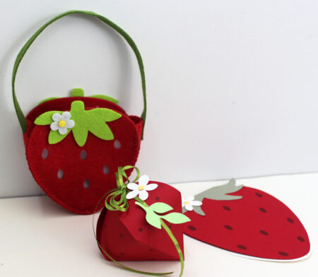 Μπομπονιέρα τσαντάκι φράουλα! Υλικά: Τσόχα Διαστάσεις: 20×11 εκατοστά.