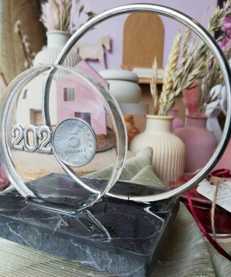 35.00 €Χειροποίητο συλλεκτικό γούρι με νόμισμα 5 δραχμές και μεταλλικό 2025 σε υγρό γυαλί, σε μαρμάρινη βάση με μεταλλικό κύκλο! Δραχμή από το ρήμα δράττω που σημαίνει κρατάω σφικτά.. Ας είναι αυτό το γούρι η αφορμή να θυμηθούμε να κρατάμε σφικτά ό,τι αγάπαμε και ό,τι μας γεμίζει με ευτυχία.. Ας είναι […]