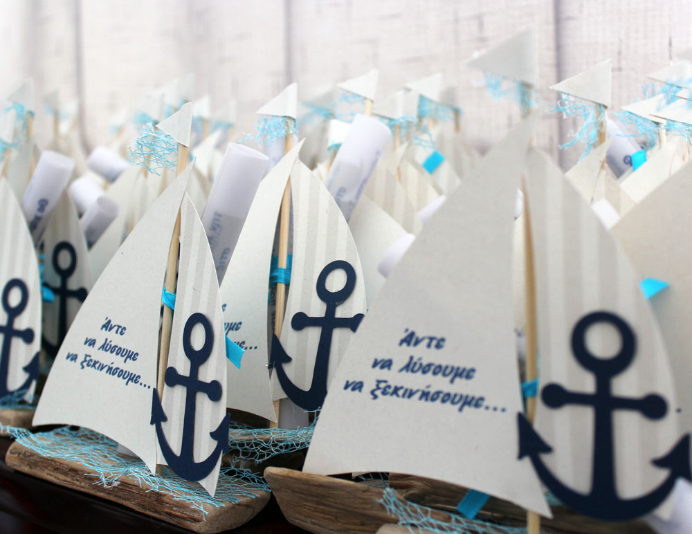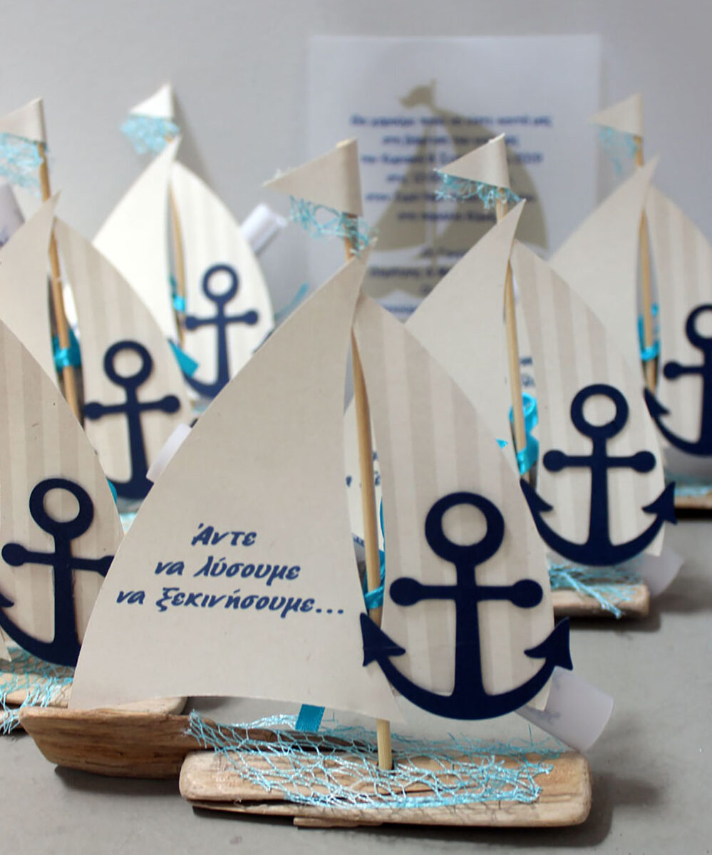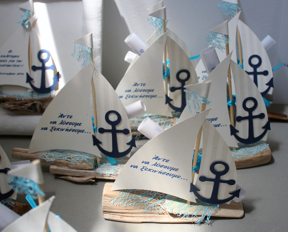 Προσκλητήριο σε ρολάκι πάνω σε χειροποίητο καράβι με θαλασσόξυλο!