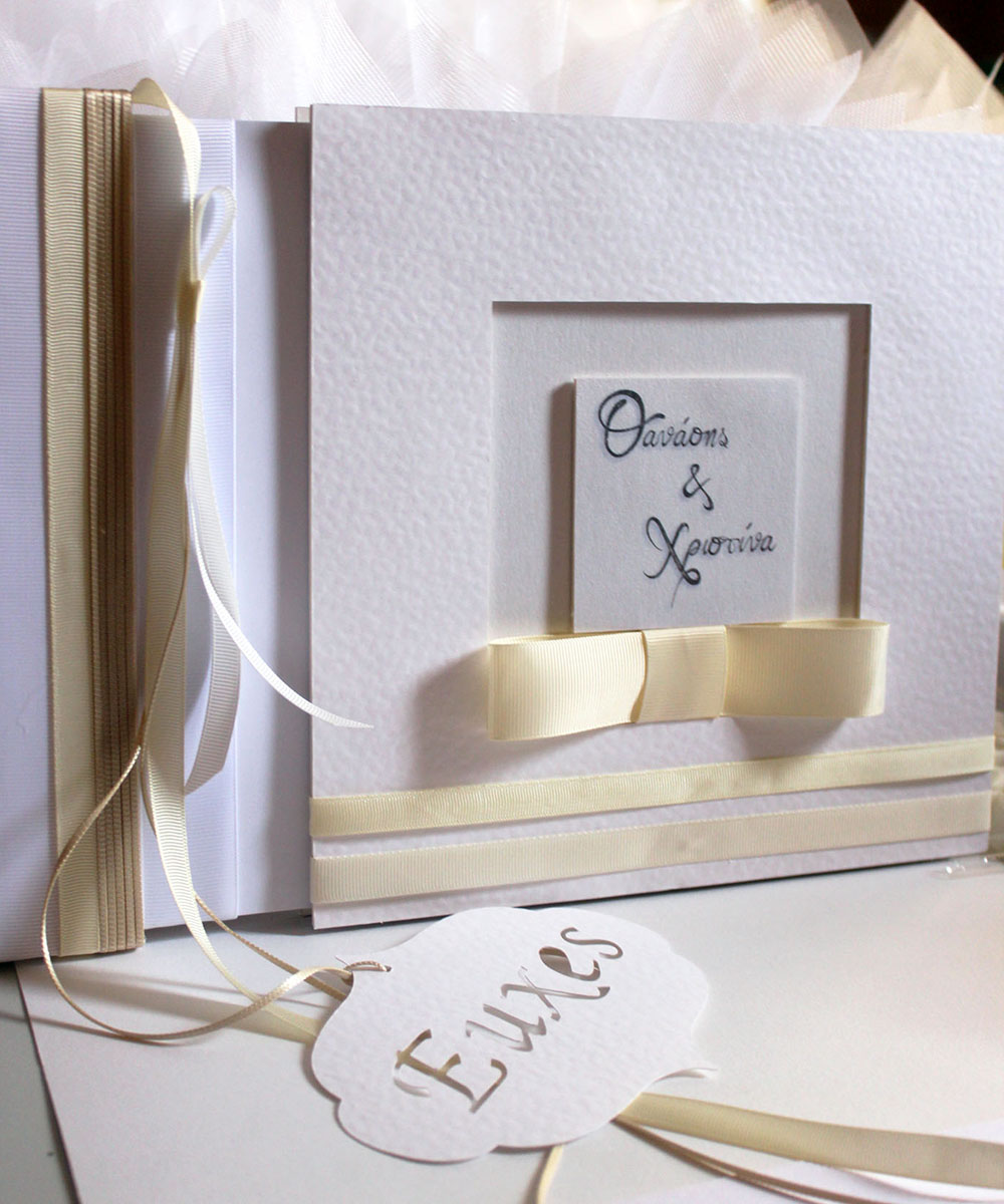 Χειροποίητο βιβλίο ευχών λευκό με σφυρίλατο χαρτί!