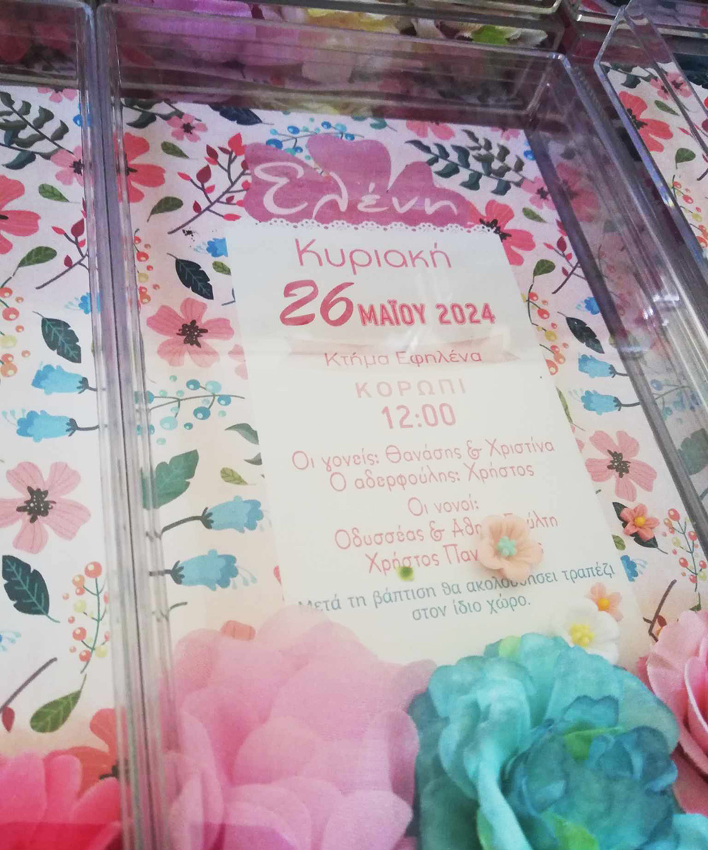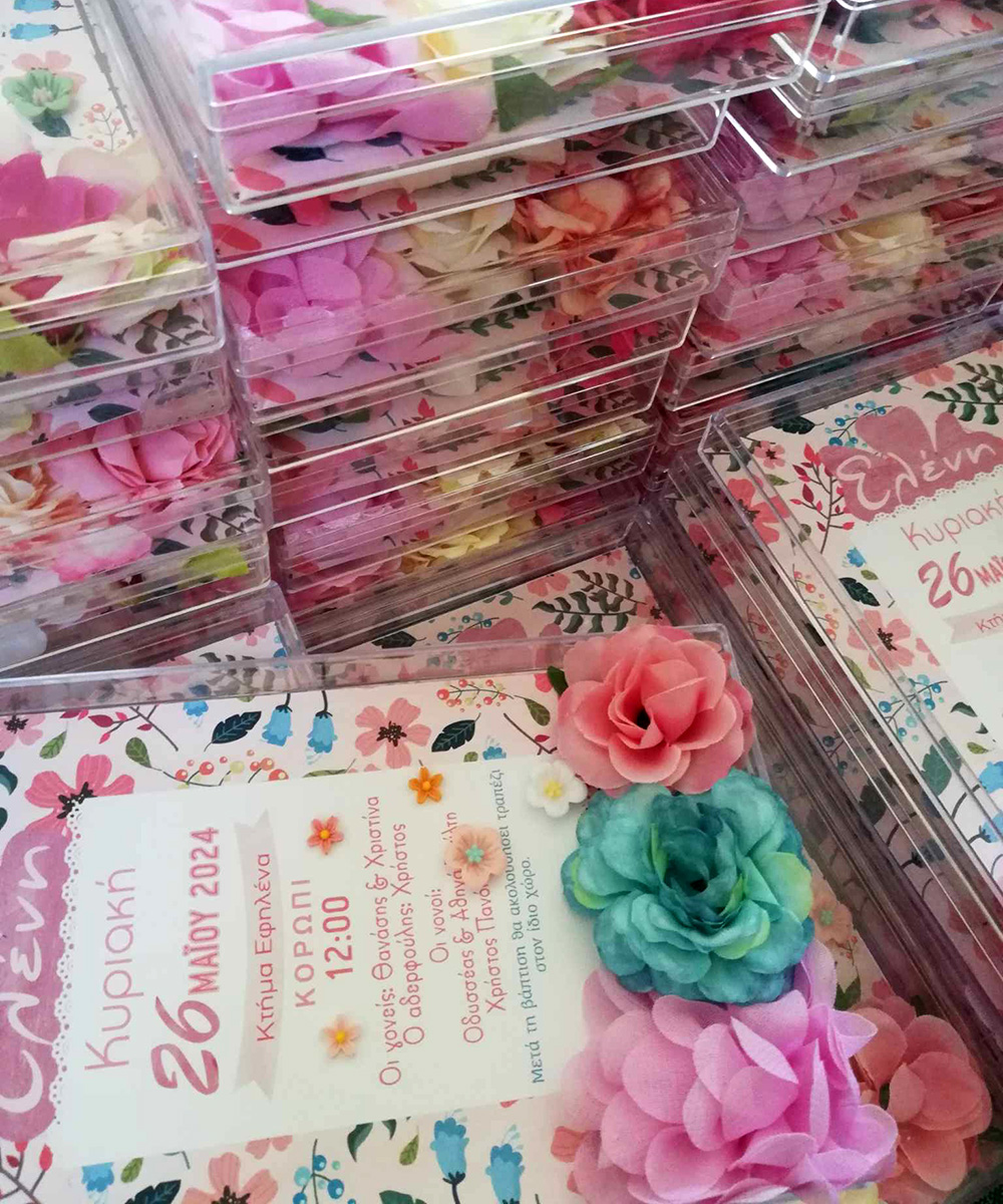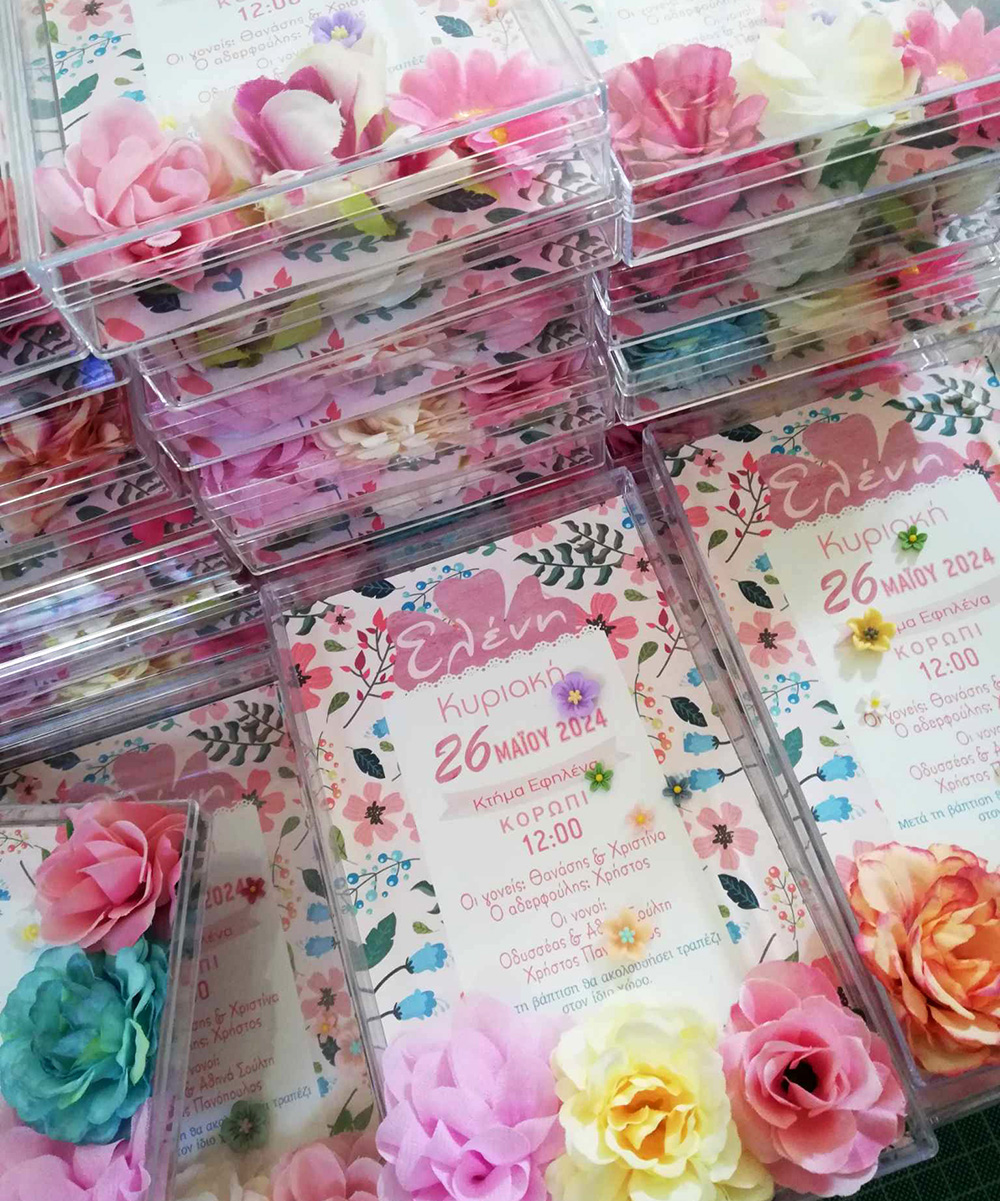 Υλικά: Χαρτί, pleiglass, άμμος, υφασμάτινα λουλούδια, ακριλικά λουλούδια