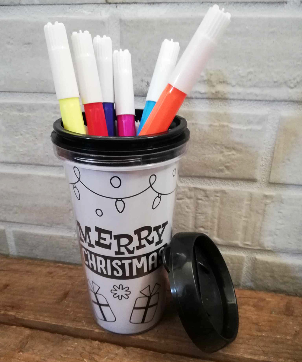 - 1 Ποτήρι θερμός 17x9cm με χριστουγεννιάτικη εκτύπωση για ζωγραφική